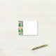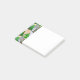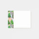 Este bloco de notas Post-It tem um design de árvores de Natal em vários tons de verde, rosa, prata e dourado com diferentes decorações.