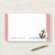 Este é um bloco de notas perfeito para a pessoa que ama estar na água. Apresenta um gráfico de uma âncora com uma corda, um sol listrado amarelo e branco e várias linhas de ondas de água azul e acentuado com várias linhas verticais vermelhas e brancas. Personalizado com seu nome.