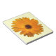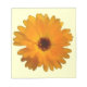 Este incrível bloco de anotações mostra uma foto de uma bela flor de laranja com um centro escuro. O fundo é uma bela cor amarela clara.