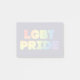 Este design apresenta letras arco-íris que soletram a frase Orgulho LGBT.