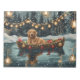 Mergulhe na magia da temporada de férias com esta ilustração lindamente detalhada, mostrando um cachorro orgulhoso sentado em um barco festivamente decorado, deslizando através de um lago de Natal sereno. As luzes cintilantes dos pinheiros próximos refletem sobre a água, lançando um brilho quente e festivo que melhora o conforto ambiente. Os ornamentos pendem do lado do barco, enquanto as lanternas brilhantes iluminam o caminho, criando uma cena que captura a verdadeira essência do calor e alegria natalinos. Esta trabalho de arte nostálgica traz um toque de magia de férias para qualquer espaço, perfeita para aqueles que apreciam o espírito da estação.