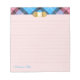 Ouro moderno do Tartan Monograma Script Apricot Lined Notepad Girly, elegante e moderno bloco de notas personalizável "monograma personalizado" em um crachá ouro, tartã de xadrez azul / rosa no topo e "notas personalizadas de nome" no fundo em fundo revestido de damasco. Personalize este belo bloco de notas como um presente maravilhoso adicionando seu nome ou texto / mudando a fonte, cor, tamanho e posição.