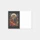 Sticky notes with a cool looking owl with a piercing stare. A full moon in the back with a garden of red flowers.