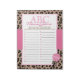 Bloco de notas Jogos de Bebê do Leopard e do Pink ABC, Preencha em cada espaço com um nome de bebê que começa com a letra listada. Quem tem mais tempo, ganha!
