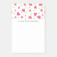 Grandes notas adesivas com a borda superior composta por corações cor-de-rosa e verdes que tropeçam num fundo branco. Personalize com um nome.