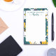 Um padrão floral estal estético de verde, branco e amarelo. Personalize adicionando seu nome. Este bloco de notas é excelente para a secretária pessoal ou organização de escritório. Pode ser parte de um presente para um amante de papelaria, como presente de aniversário ou como parte de uma temporada de férias.