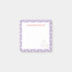 Doce White Daisies Floral Pattern Notas de Posto para anotar rapidamente seus pensamentos. O layout pode ser personalizado com seu nome, ou você pode deixá-lo vazio. A design feminina com margaridas na lavanda e no coral é perfeita para adicionar um toque de cor à sua coleção de artigos de papelaria. Todo trabalho de arte é original e projetado pelo Creative Wolf Design.