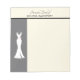 Bloco de notas feito com um fundo de cinza clássico. Uma ilustração gráfica de um elegante vestido branco pendurado num cabide. Design minimalista simples.