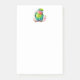 Notas pegajosas com uma bela ilustração de papagaio. Um pequeno papagaio verde com cores azuis e amarelas se misturando. O pescoço tem um tom vibrante de rosa avermelhado.