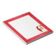 Bloco de notas mostrado com bordas brilhantes vermelhas falsas e divertidas e uma cabeça fofa do Santa Clause no canto inferior. Espaço branco no centro para você juntar suas mensagens. Personalize este item ou comprar como está. Imagem do stock