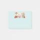 Notas pegajosas com uma bela ilustração com um coelho, um urso e um veado todos vestidos com roupas festivas. Adorável e caprichoso.