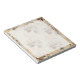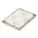 Pasta de notas de 5,5" x 6" com uma imagem de vinhetas castanhas de todas as coisas Paris num creme e fundo floral bronzeado e um espaço escrevendo branco transparente. Veja toda a coleção do Bloco de Notas de Cancan em TOUCHES ESPECIAIS | Seção Favoritos para festas.