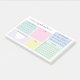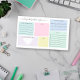 Notas práticas de posto para seu planejamento diário de autoatendimento com categorias de cor pastel. Escreva coisas para serem gratos, mantenha o controle de quanta água você bebe, quantas vezes você esticou durante o dia, e sua contagem de passos. Anote uma afirmação para o dia, anote suas refeições e adicione uma lista de tarefas. Há também espaço para adicionar notas ou coisas para lembrar. Personalize com seu nome em um script bonito.