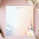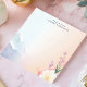 Encontre inspiração na beleza da natureza com este bloco de notas personalizado. A design apresenta uma paisagem serena com montanhas pastéis macios e flores delicadas no primeiro plano. As cores calmantes e a cena pacífica criam um pano de fundo tranquilo para as suas notas. Personalize este bloco de notas com o seu próprio texto. Ideal para registro, reflexões ou lembretes do dia a dia.