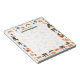 Um bloco de notas com um padrão sazonal de Ação de Graças. Apresentando peregrinos brancos, perus, torta de abóbora e outros diversos elementos temáticos do outono.