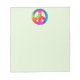 Bloco de notas verde claro de 5,5" x 6" com uma imagem de um símbolo de paz psicodélico brilhante. Veja toda a coleção de Bloco de Notas Disco 70s em TOUCHES ESPECIAIS | Seção Favoritos para festas.