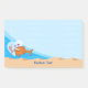 Ilustração de desenho animado de peixe apaixonado pela isca do verme no gancho. Texto personalizado.