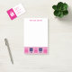 Inspiração e peculiar, para negócios, para casa, para escola. Na próxima vez que você tiver uma nota ou lembrete para escrever, olhe para ela de uma perspectiva diferente, viva sua melhor vida, e "PENSE FORA DA CAIXA". Logotipo rosa profundo e marinho; fundo branco; texto cor-de-rosa profundo.