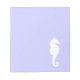 Forma branca de um cavalo marinho contra um azul-piscar-luz.