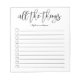 O moderno painel de notas personalizado e apresenta "todas as coisas" no topo em tipografia escrita à mão. Personalize com seu nome ou deixe o vazio, se desejar. 14 linhas com caixas de seleção ajudam a rastrear todas as tarefas importantes que você precisa realizar! Criação de Bizzy Bee ©