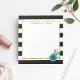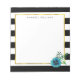O moderno folheto de notas florais apresenta listras brancas e pretas chicas com uma flor azul de cor aquosa e uma borda falsa de ouro. Personalize com um monograma, nome ou texto de sua escolha!