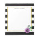 O moderno painel de notas florais apresenta listras brancas e pretas chicas com uma flor pansível de cor d'água púrpura e sotaques dourados falsos. Personalize com um monograma, nome ou texto de sua escolha!