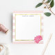 O bloco de notas personalizado apresenta um fundo cor-de-rosa e branco rosado, borda falsa de folha de ouro, e uma flor vibrante cor-de-água rosa. Personalize com um monograma, nome ou texto de sua escolha.