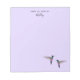 Bloco de notas personalizado com dois beija-flores azuis com garganta azul no lado púrpura pálido. O estilo, o tamanho e a cor da fonte podem ser alterados clicando em "personalizar mais".