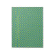 Um Bloco de Notas na moda ou Jotter para personalizar, com um padrão de bolinhas verdes-claras (Tender Shoots) e azuis-escuros (Mônaco Blue) em tamanhos variados em um fundo verde-esmeralda.