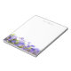 Este bloco de notas personalizado apresenta uma bela borda desfocada de flores silvestres roxas, trazendo um toque de natureza e serenidade às suas notas e listas diárias. O efeito bokeh suave e o fundo claro tornam este design de papelaria romântico e atemporal.