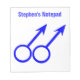 Este incrível bloco de notas foi projetado para gay. Apresenta dois símbolos masculinos azuis de pé lado a lado. O fundo é branco e há texto azul personalizável no topo, permitindo que você personalize este bloco de notas.