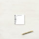 Black and white piano keyboard and a hand-drawn music note with customizable name at the top of post-it-notes.
