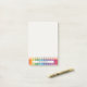 Add personality to your desk or classroom with these personalized rainbow pencil Post-it® notes, perfect for teachers and educators who want to brighten up their daily reminders. The design features a vibrant row of rainbow-colored pencil tips along the bottom edge, creating a playful yet professional aesthetic. Centered within the pencils is a customizable name area, allowing you to personalize each pad with your name or title. Ideal for jotting down quick notes, classroom reminders, to-do lists, or messages to students and parents, this cheerful stationery is as functional as it is fun. The compact square format fits easily on your desk, in a drawer, or in your teacher tote. Whether used in the classroom, at home, or in the office, these colorful sticky notes bring a touch of creativity and joy to every message you write.