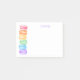Este bloco de notas branco apresenta a imagem de uma pilha assimétrica de 6 macarões tosy, multicolores, à margem esquerda do bloco de notas, em rosa, laranja, amarelo, verde, azul e lilac - personalize com seu nome - por katz_d_zynes