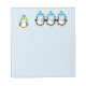 Bloco de notas de feriado bonito com pinguins vestindo chapéus e cachecóis.