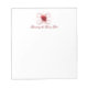 Bloco de notas branco de 5,5" x 6" com uma bela rosa vermelha em meio a espirais vermelha e rosa e o texto "Pintura do Rosa Vermelho" em uma fantástica escrita vermelha. Veja toda a coleção Wonderland Notepad nos TOUCHES ESPECIAIS | Seção Favoritos para festas.