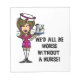 Uma enfermeira design bonitinha com uma enfermeira de cabelos castanhos com uma bandeja com água e um lançador e texto que diz "Seríamos todos piores sem uma enfermeira em T-shirts, bolsas, canecas, autocolantes, cartões, ímanes e outros roupas e presentes de enfermeira.