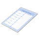Este adorável bloco de notas semanal de planeamento de refeições apresenta um fundo floral azul claro e branco. Planeje a refeição de cada dia e a sua lista de comprados, tudo numa página.