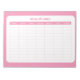 Folha de notas com 40 folhas impressas com o gráfico de um simples planejador semanal rosa