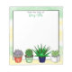 Bloco de notas personalizado com uma mão desenhada suculenta com fundo verde e amarelo.