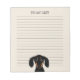 Notas do Dachshund Lover. Engraçado, preto com revestimento liso e cachorrinho de Doxie bronzeado. O texto pode ser personalizado com seu nome ou slogan. Bloco de notas de papel em linchamento para trabalho, listas de tarefas pendentes, escola e listas de compras. Faz um presente divertido para um amigo para um membro da família que ama cachorros-salsicha. Disponível em mais cores de papel.