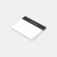 O Bloco de Notas Profissional apresenta o nome personalizado e o texto em estilo de fonte de serif clássica, em branco, na borda superior preta, em fundo branco.
