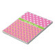Um Bloco de notas ou Jotter para personalizar, com uma mistura bonito de padrões: grandes bolinhas brancas em cor-de-rosa profundo e um padrão mini-impressão de primatas amarelos e bolinhas verdes, também em cor-de-rosa profundo. Parte da coleção "Primroses" de Posh & Painterly.