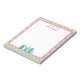 Este bloco de anotações fofo apresenta cacto e flores cor-de-rosa do deserto em um padrão de cóvron colorido. Com o texto "uma nota de", personalize o bloco de notas com o nome do professor. Excelente como um presente único para a apreciação dos professores, de volta à escola, Natal ou como obrigado final do ano você oferece.