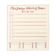 O design do bloco de notas no estilo de lista apresenta uma ilustração original de uma barra de balés. Apenas personalize com a informação do seu estúdio de dança. Este compro também disponibiliza várias notas ilustradas adicionais. Este design também está disponível em outros produtos. Não vê o que está procurando? Precisa de ajuda para a personalização? Entre em contato com Rebecca para ter algo projetado só para você.