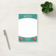 O estudante de professor anota pegajoso com fundo verde-teal uma maçã vermelha brilhante. Excelente para a escola primária e as salas de aula do ensino médio. Personalize o professor e as informações de classe.