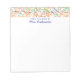 Estas anotações para professores apresentam um padrão de borda fofo de rabiscos laranja, verdes e azuis em um fundo branco. O título "FROM THE DESK OF" tem um nome abaixo para personalizar em moderno script escrito à mão. De nossos corações aos seus, aproveite!