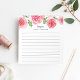 O bloco de notas floral chico apresenta uma borda superior de rosas cor-de-água rosa e vermelha e folhas verdes. Personalize com duas linhas de texto personalizado em blocos modernos e letras caligráficas; mostradas com a saudação francesa "bonjour" e seu nome. Pautado.