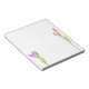 Um lápis a cores de uma íris roxa e pitada enfeita enfeita este bonito bloco de notas!