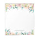 Este bonito e moderno bloco de notas apresenta um fundo branco limpo com um cheio de borda de água lindo de flores em tons de rosa, marfim, branco e pêssego com muitas folhas verdes e lacrimogêneas
